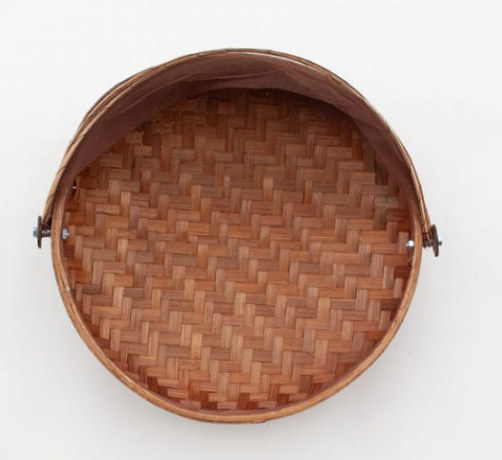 Cesta/portafrutta con velo in paglia marrone. Realizzata a mano in Indonesia.